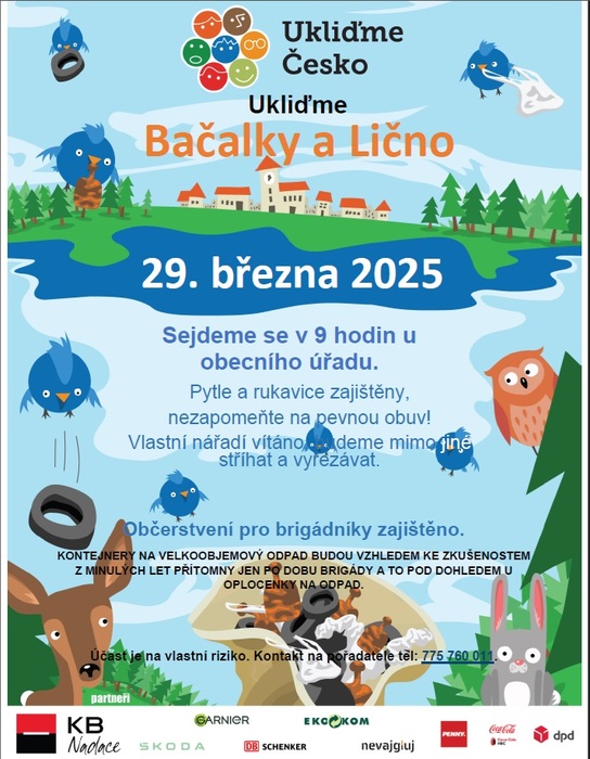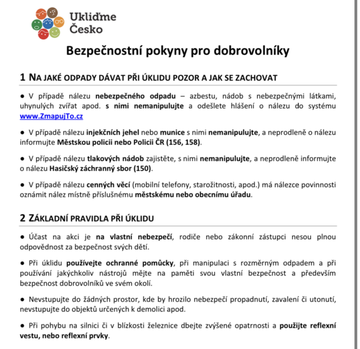 Ta se bude konat pod záštitou dobrovolnické akce Ukliďme Česko, která nám poskytuje ochranné rukavice a pytle na odpad.