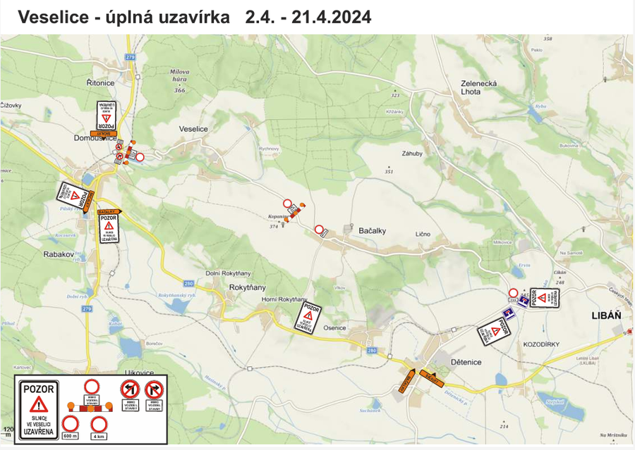 Uzavírka silnice směrem na Veselici